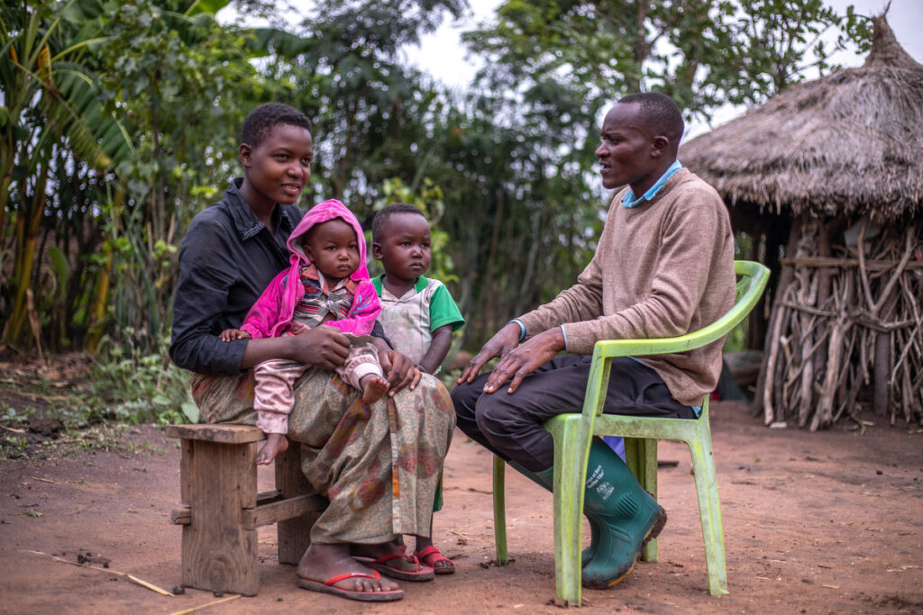 Community Health Worker (Samson) and daughter and grandchildren of traditional healer Hollo Nteba Image ©Adrian Mgaya for Amref Health Africa Tanzania.